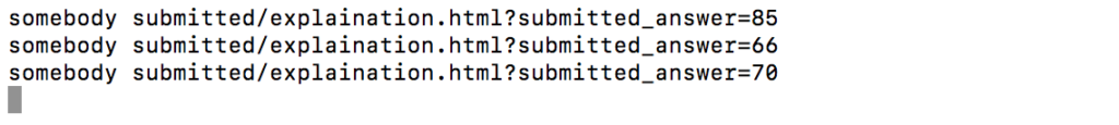 As you can see, the GET request also contains a log of the submitted value via the request’s URL (req.url).